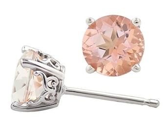 AAA Morganite Earring, Fancy Halo Earrings 14k Rose Gold Morganite Stud Earrings Center 5mm Round Post Earring P172